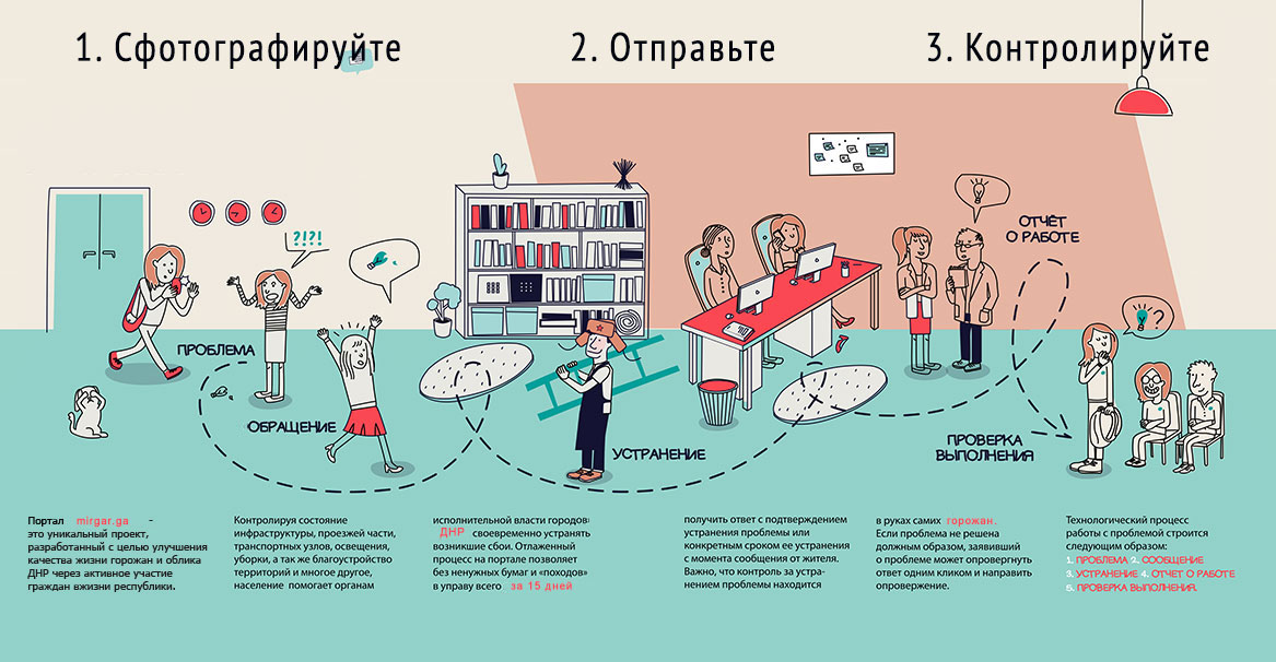 Информационный сервис "Мир Гармонии" — это уникальный проект, разрабатываемый с целью улучшения облика городов и качества жизни граждан Донецкой Народной Республики через их активное участие в проблемах городской среды республики.