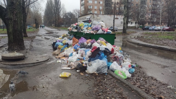 Калининский район, Шахтостроителей 15, мусорные баки вот в таком состоянии